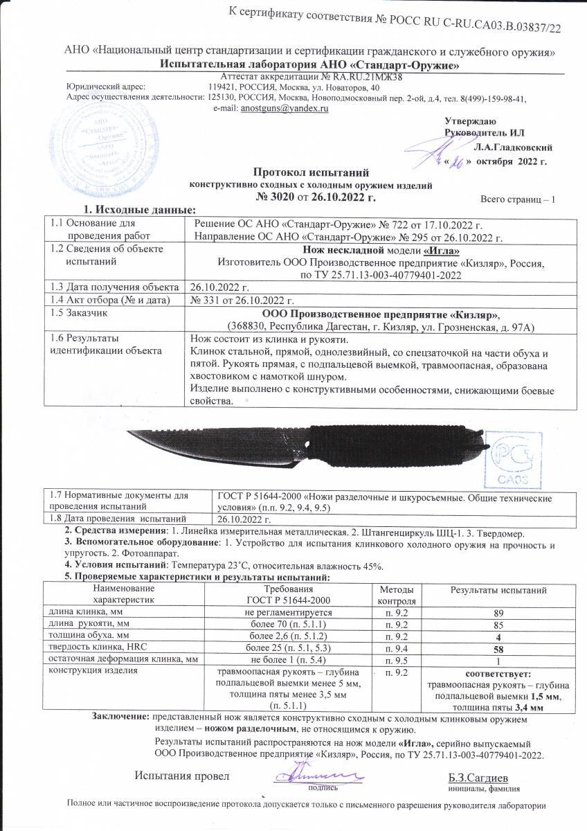 НОЖ "ИГЛА"
