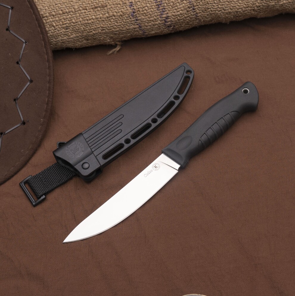 Нож Сайга - это большой охотничий нож, универсальный с приятным дизайном. Конструкция – fulltang, хвостовик рукояти проходит через всю рукоять. Спуски прямые от обуха. Форма клинка Drop point. Клинок такой формы одинаково хорош как для реза, так и для укола, Лезвие такого клинка не слишком агрессивное, но зато очень прочное.