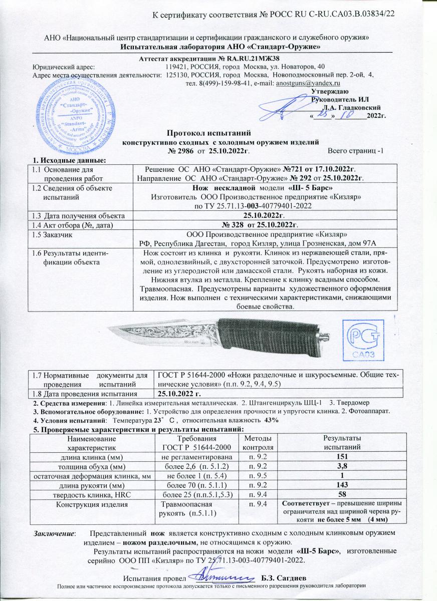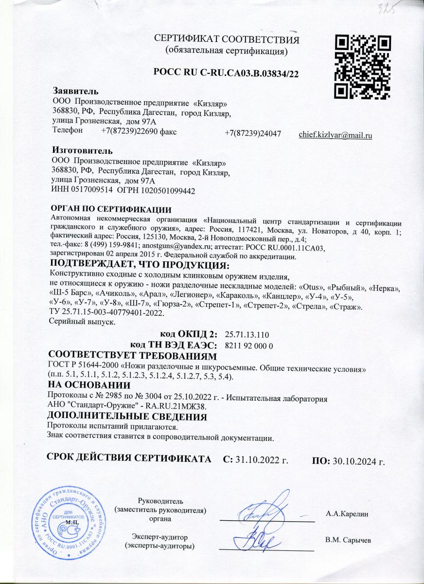 Материал клинка – сталь AUS8, твердость 57-58HRC