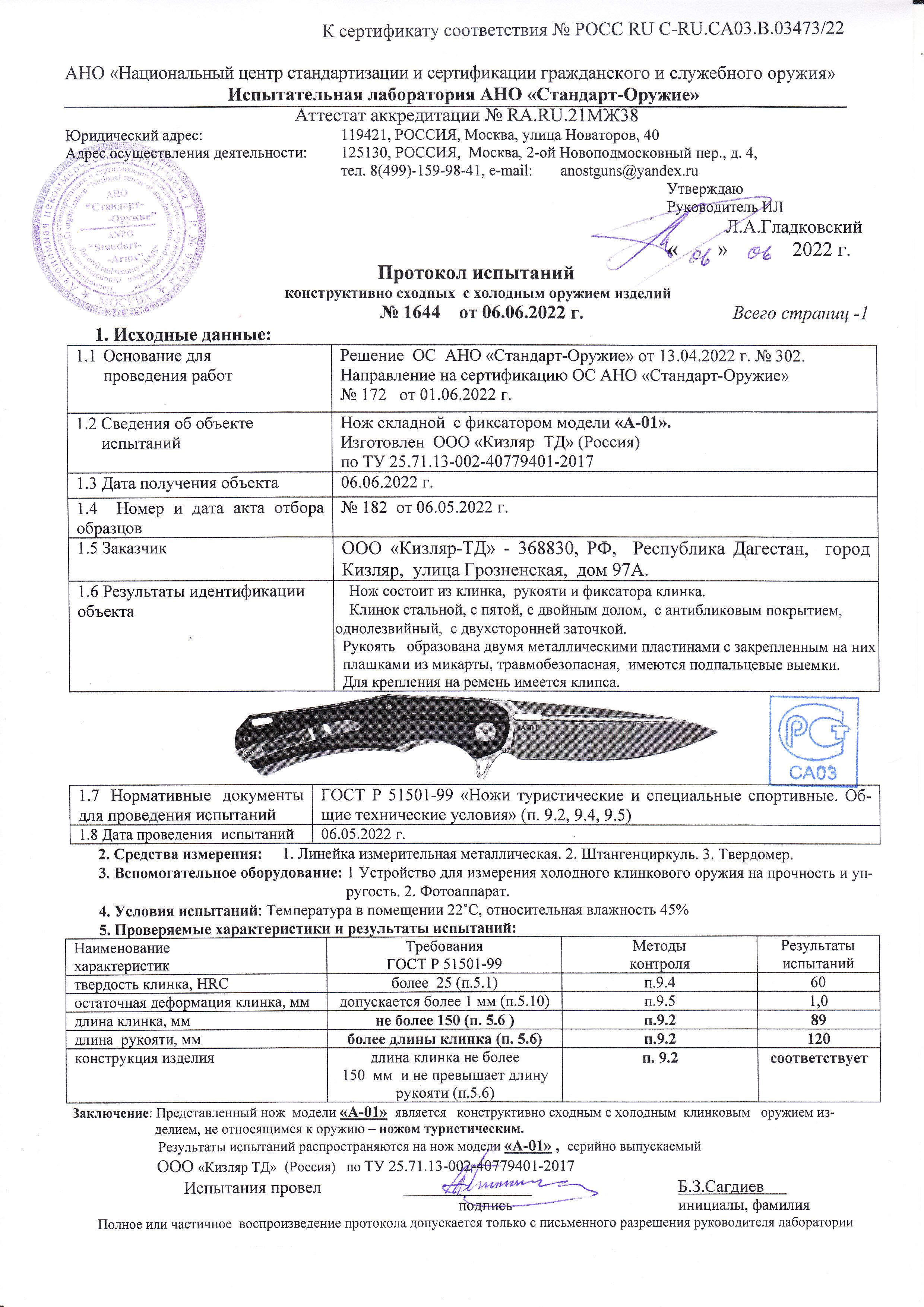 Примечание | Не относится к холодному оружию |