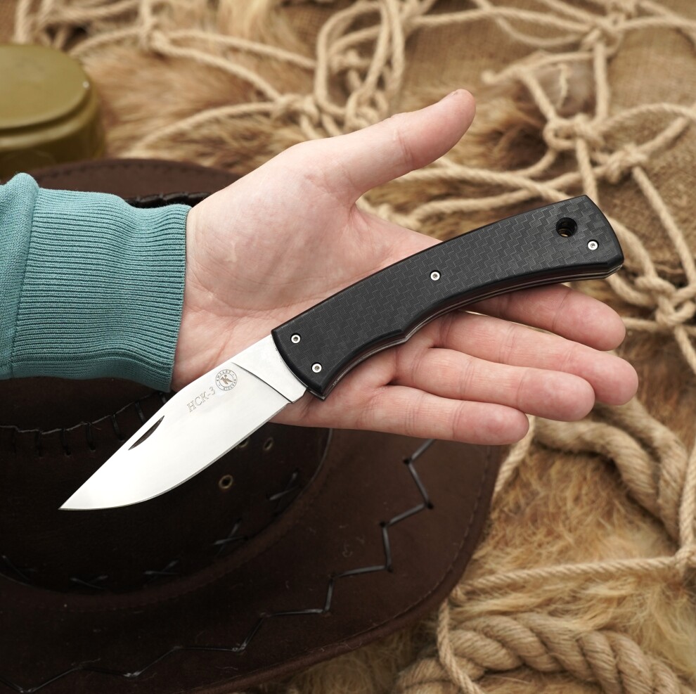 Знаете, что такое «приятная механика»? Это когда нож хочется открывать и закрывать просто ради удовольствия. Знакомьтесь, обновленный НСК-3 от нашей. Главное обновление — внутри. Теперь здесь есть промежуточная фиксация на 90 градусов. Безопасно? Да. Пружина стала мягче, но фиксация всё такая же «бетонная». Никаких люфтов. А теперь посмотрите на эту внешку. В линейку добавили накладки из АБС-пластика с фактурой под карбон. Выглядит дорого, а в руке лежит как влитой. Кстати, это самый легкий нож во всей линейке НСК-3. Для тех, кто ценит каждый грамм в кармане или сумке. Но классика с эластроном тоже на месте! Пара цифр для профи: общая длина — 230 мм, честный клинок на 100 мм. Настоящий работяга, который стал… интеллигентнее, что ли.