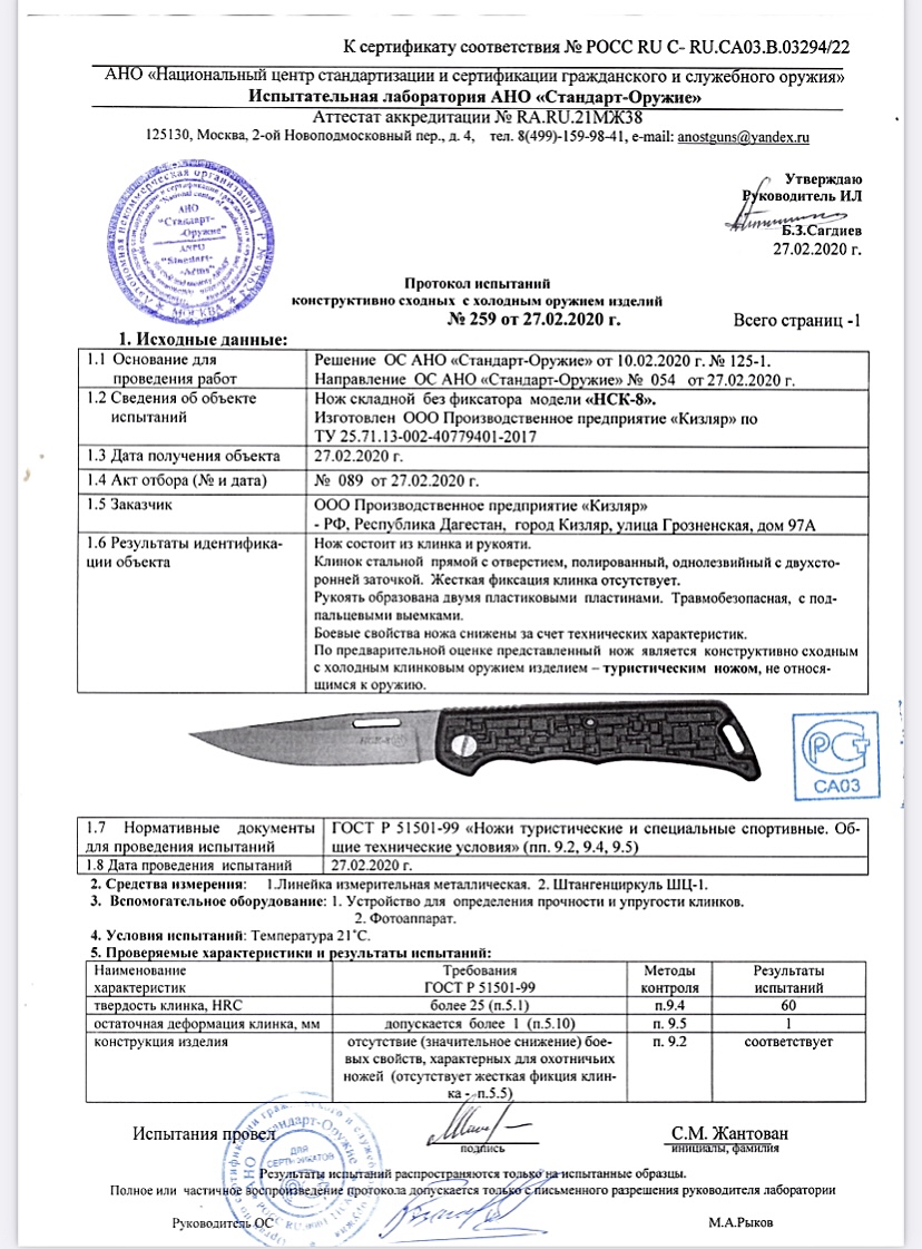 Материал клинка – сталь AUS8, твердость 57-58 HRC