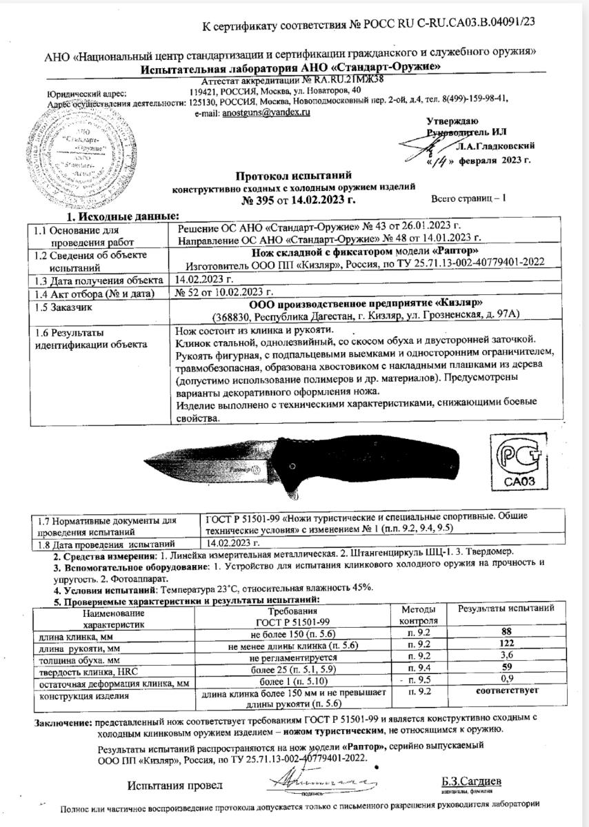 НОЖ СКЛАДНОЙ "РАПТОР" версия 2025