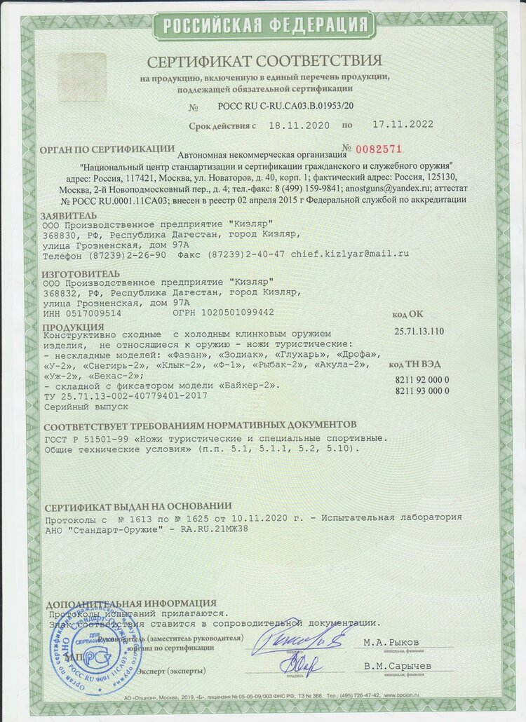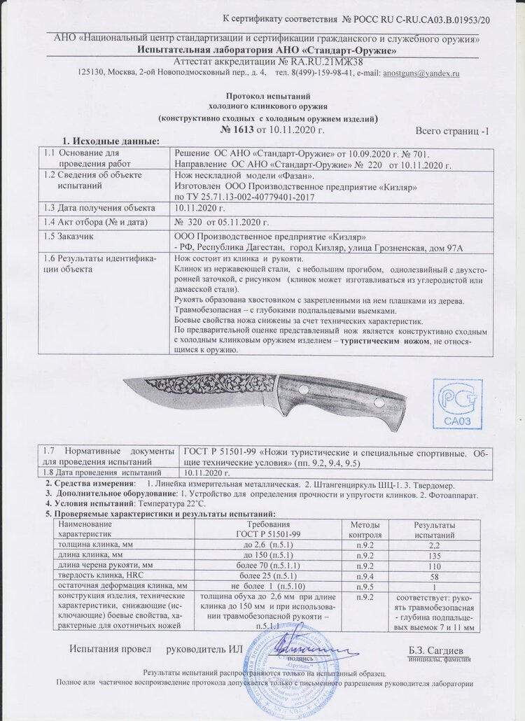 НОЖ ТУРИСТИЧЕСКИЙ "ФАЗАН" ЛАТУНЬ