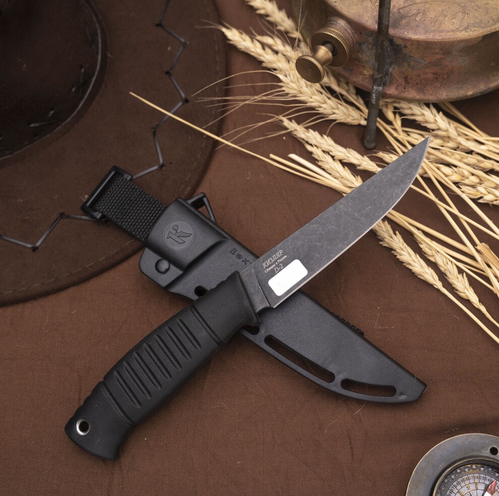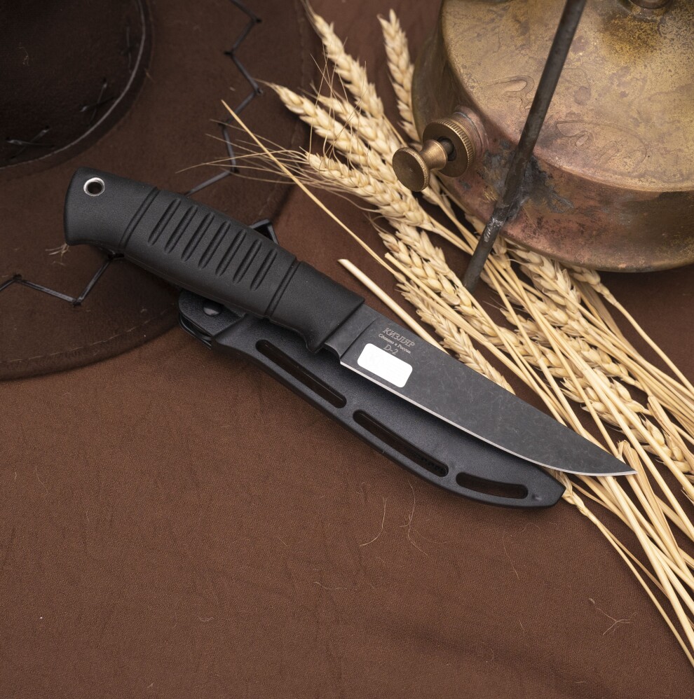 Клинок: Классическая форма: Длина клинка 126 мм — оптимальный размер для широкого спектра задач: от обустройства лагеря до разделки трофея. Клиновые спуски: Обеспечивают идеальное сочетание прочности подвода и отличной проникающей способности. Нож буквально «проваливается» в материал. Сталь D2: «Золотой стандарт» для серьезных ножей. Обладает великолепной износостойкостью и способностью долго удерживать бритвенную остроту. Благодаря высокому содержанию углерода и хрома, сталь обеспечивает агрессивный рез, с которым справятся немногие аналоги.
