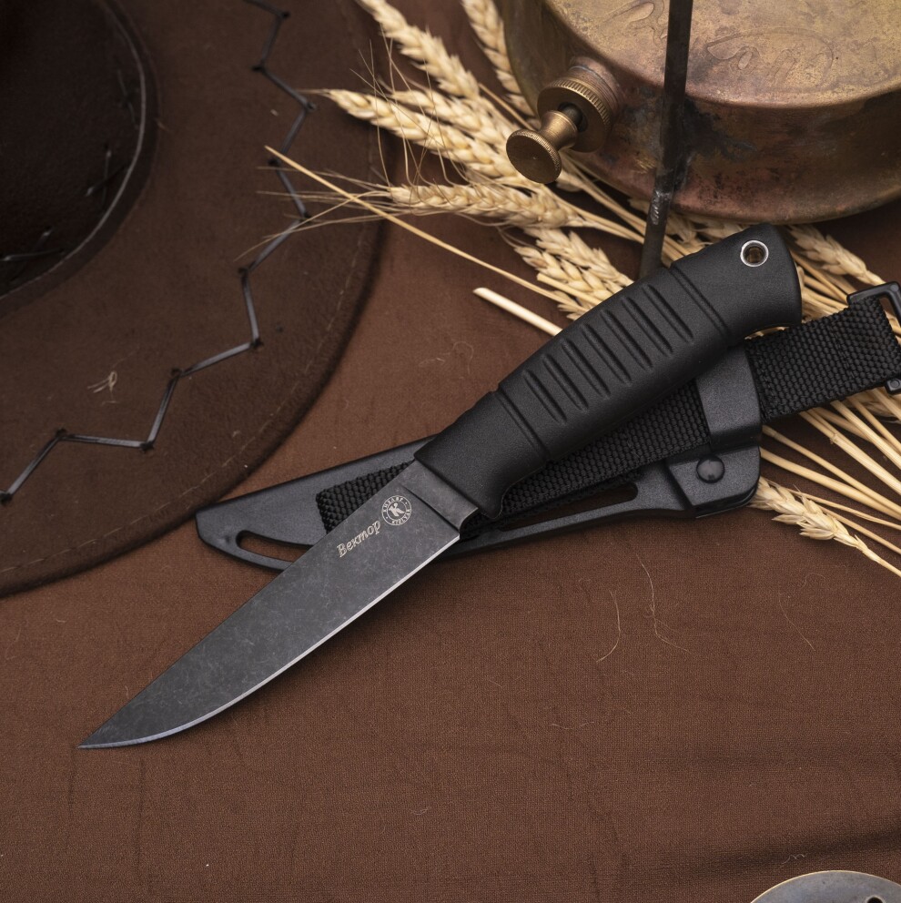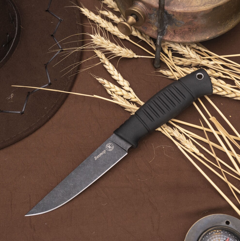 НОЖ "ВЕКТОР" СТАЛЬ D2 черный стоунвош