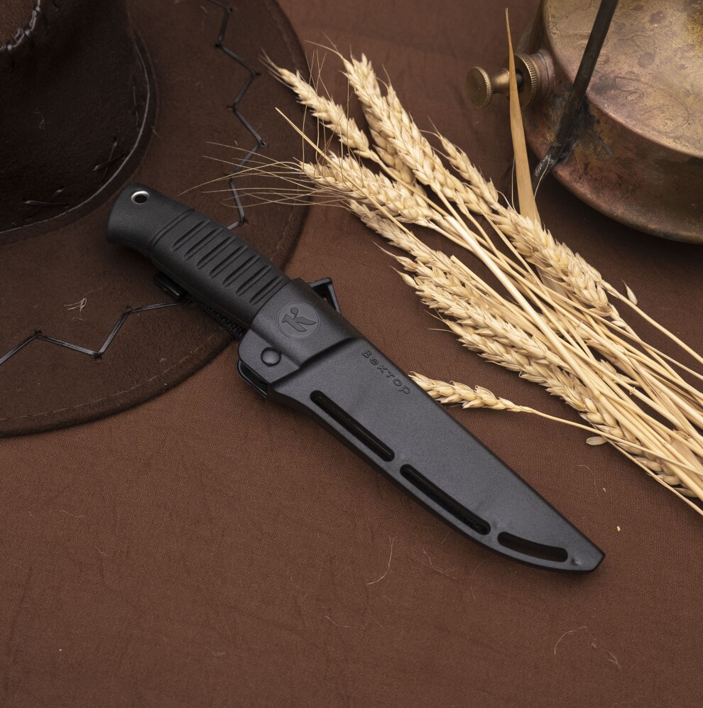 Ножны: Инновации в защите. Ударопрочный АБС-пластик: Легкие и практически вечные ножны, которые не деформируются со временем. Уникальная фиксация: Система с резиновым колесом-роликом — это наша гордость. Она обеспечивает надежное удержание ножа в любом положении (даже рукоятью вниз), при этом позволяя извлечь его мгновенно и практически бесшумно. Вариативность подвеса: Продуманная конструкция позволяет закрепить нож на поясном ремне или элементах снаряжения под любым удобным углом.